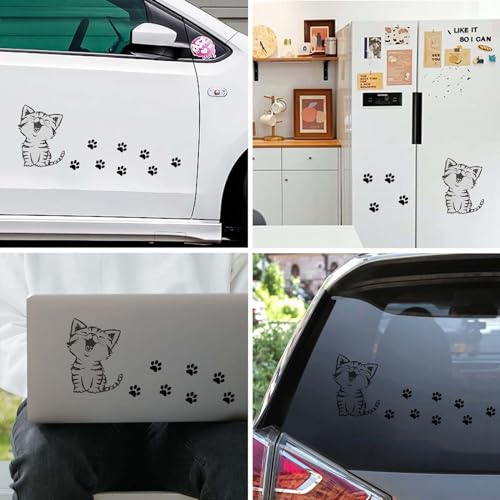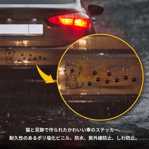 車 ステッカー かわいい 猫 デカール 肉球シール 反射 面白いステッカー 車傷隠しステッカー 取り付けが簡単 おしゃれ 車用防水ステッカー 車やバイクや壁の装飾用品 DIY飾りシール (猫と足跡)