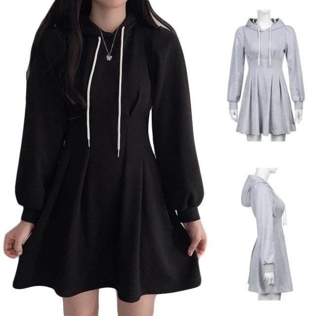 スウェットワンピース 長袖 レディース ワンピース ショートワンピ 長袖ワンピース ミニ丈 春 ショートワンピース 着痩せ フード付き スウェット