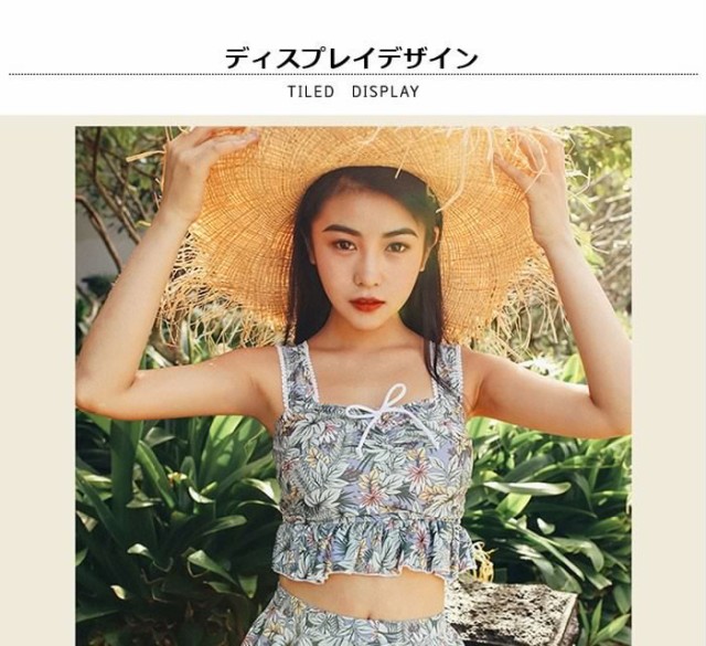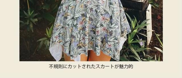 送料無料レディース水着ビキニ水着3点セットミニスカートスカートフレアスカート花柄レース付き不規則ふんわりリボン付きフリル谷間隠し