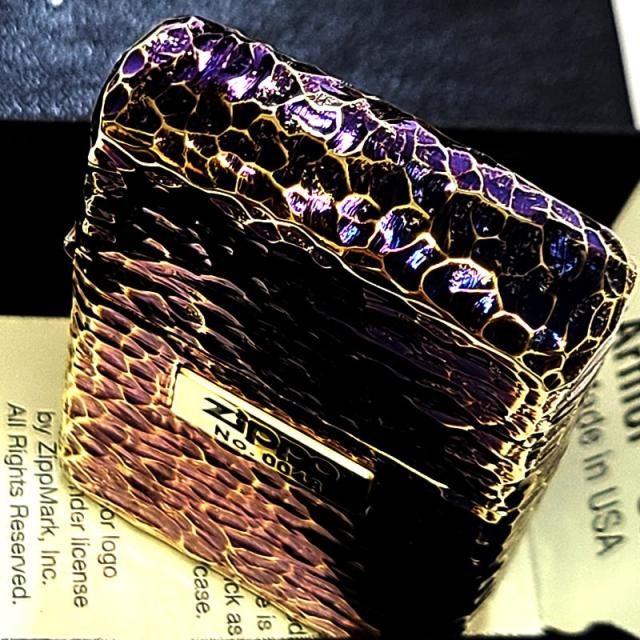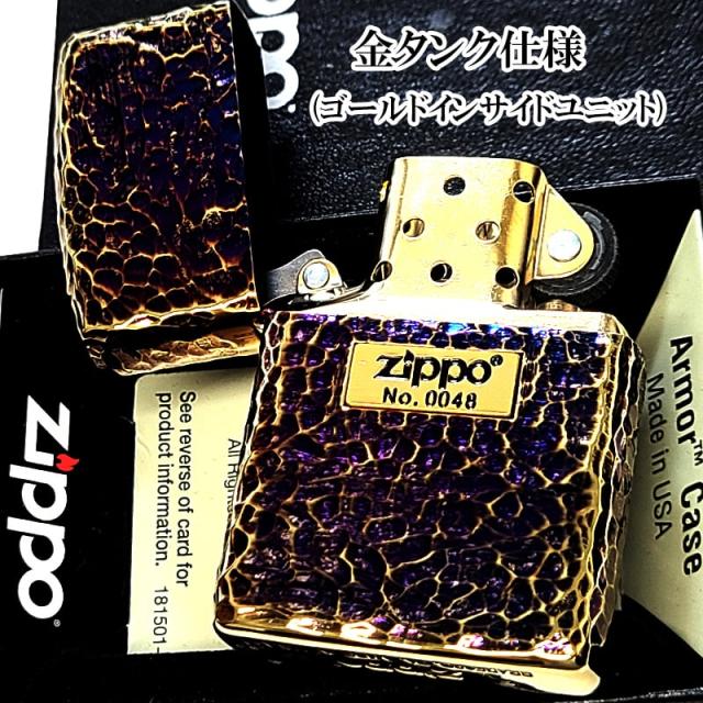 ZIPPO 5面加工 アーマー ハンマートーン おしゃれ オーロラゴールド ジッポ ライター かっこいい 金タンク シリアルナンバー入り ロゴ メタル貼り 重厚 メンズ 高級 プレゼント