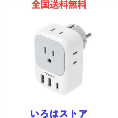 ◆商品名:TESSAN 変換プラグ 韓国 SEタイプ コンセント変換器 4個AC差込口 1USB-Cポート 2USB-Aポート付き ドイツ、フランス、オランダ、ハンガリ