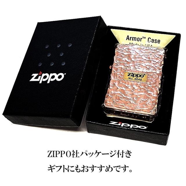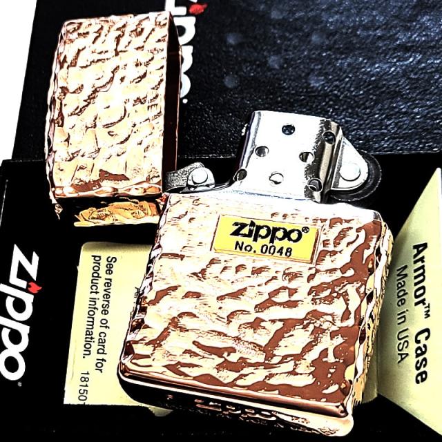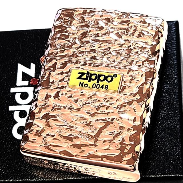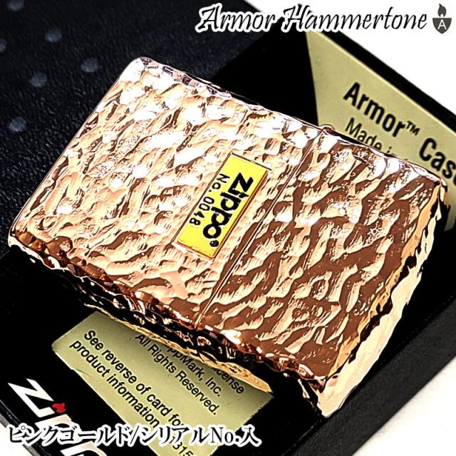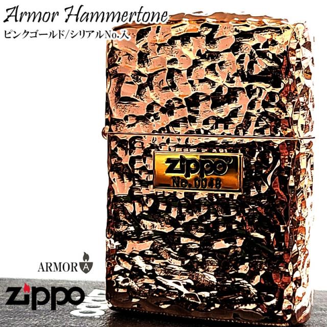 ZIPPO ライター ハンマートーン おしゃれ メタル貼り 5面加工アーマー ジッポ シリアルナンバー入り ピンクゴールド かっこいい 高級 プレゼント ロゴ レディース ギフト