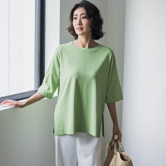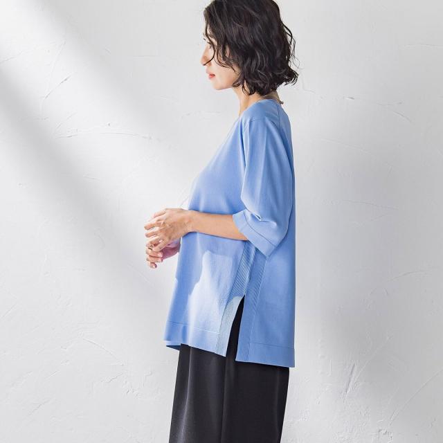 Tシャツ風ニットプルオーバー≪手洗い可能≫