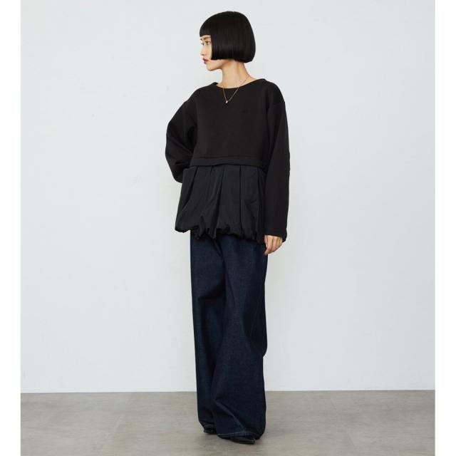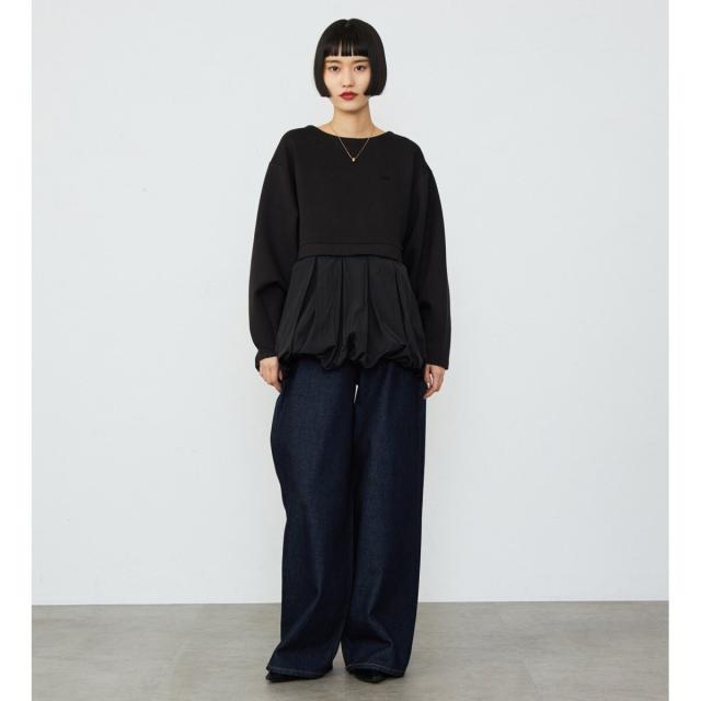 トレンド感のあるワイドシルエットで、着こなしにこなれ感をプラスし、体型をカバーしながらもスタイリッシュな印象を与えます。