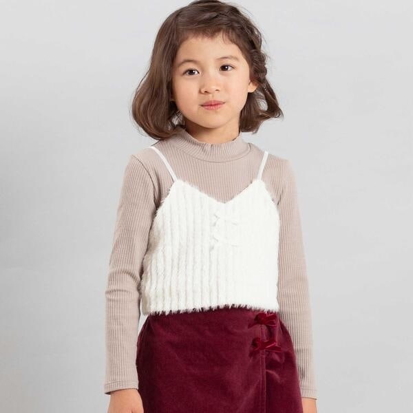ベベ(BeBe)/シャギーニットキャミビスチェ+テレコハイネック長袖Tシャツセット(100~150cm)