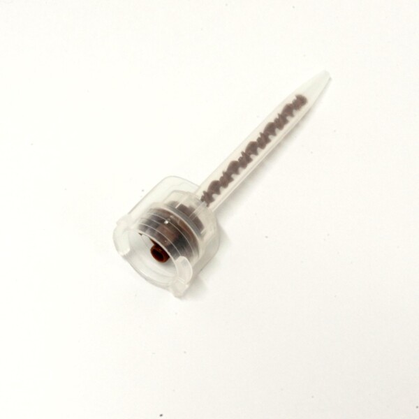 6mlなど小容量のカートリッジなどの先端に取り付け、ライトボディ印象材、コア材、レジンセメント材を混錬しながら吐出します。