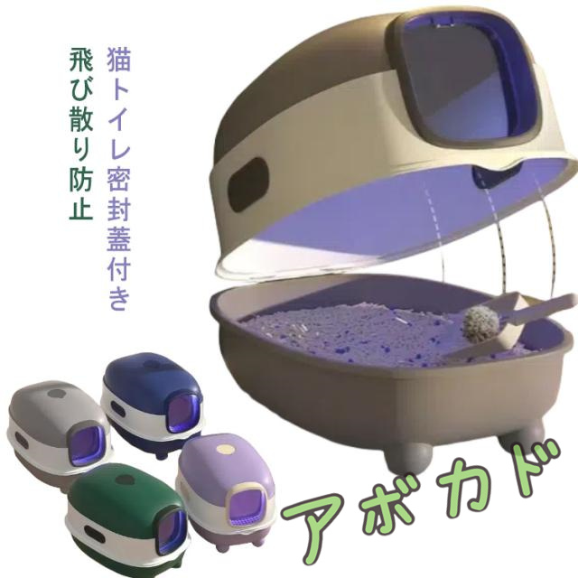 飛び散り防止 密封蓋付き ネコトイレ 清潔トイレ スコップ付き 大型 ネコ 砂落とし 蓋付き おしゃれ 猫砂 におい対策 おしゃれ ねこ グリーン フルクローズド猫砂鉢 大容量 お掃除簡単 猫用品 密閉防臭