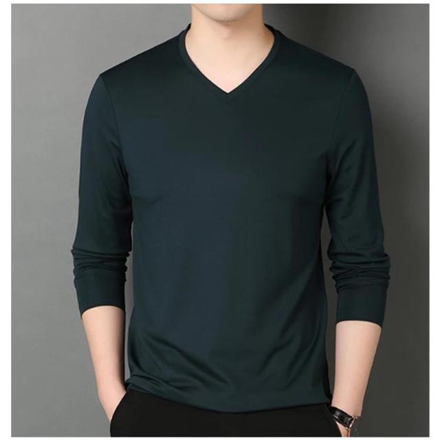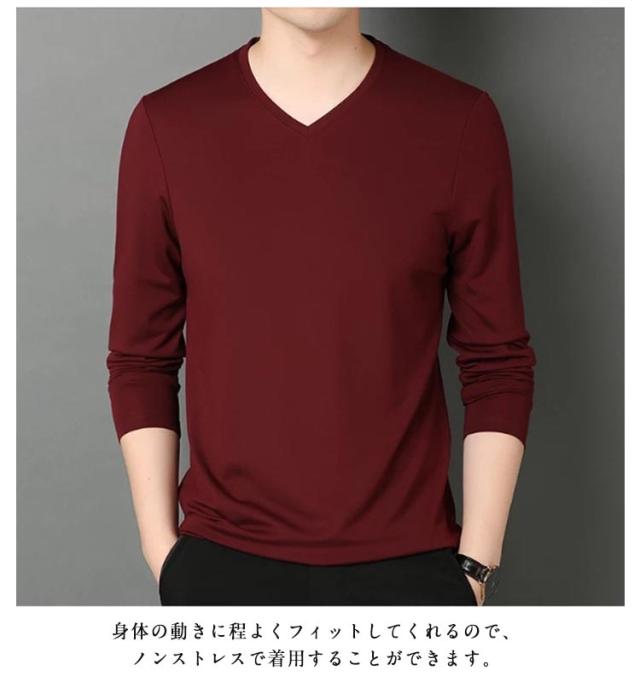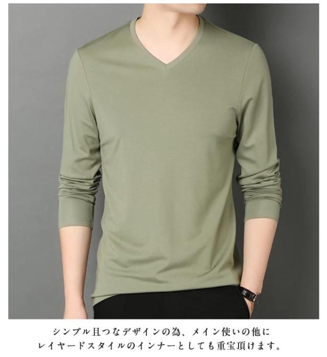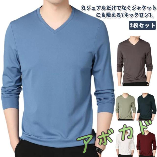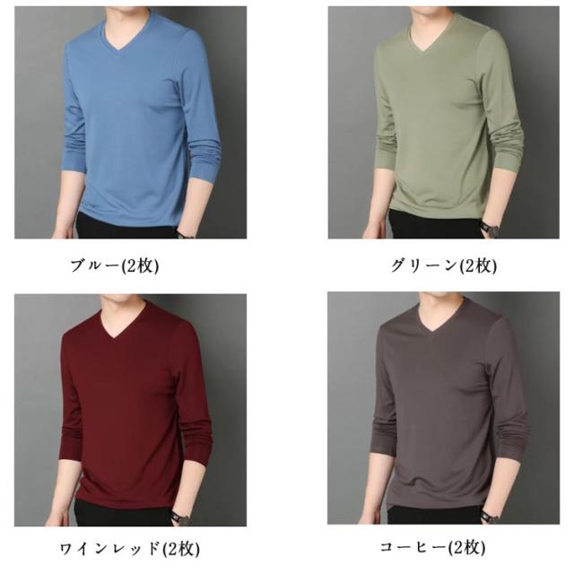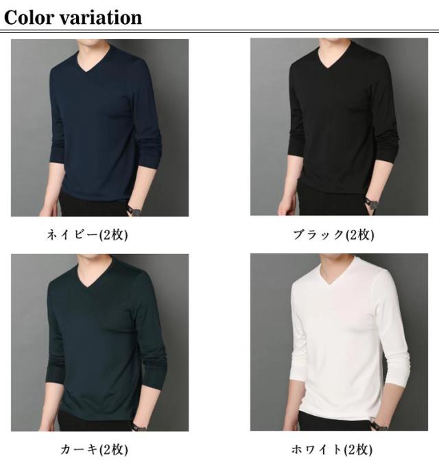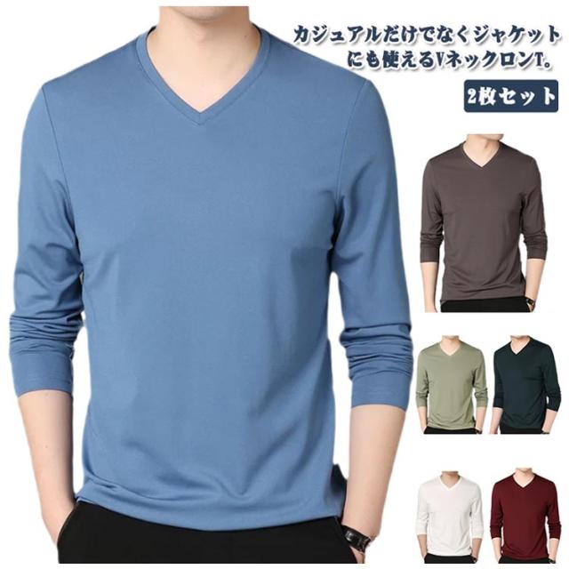 ロンt 2点セット カットソー 細身 Vネック 冬 メンズ 長袖 tシャツ ビジネス ロングtシャツ 薄手 スリム 2点セット 長袖tシャツ インナー tシャツ スリムフィット ストレッチ 秋服 秋物 秋 シンプル 無地 カジュアル 大きいサイズ 黒 白 紺 ネイビー グリーン