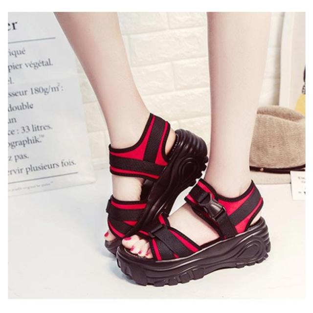 | 今シーズンも引き続き人気の高い厚底スポーツサンダル。 約7cm厚底のソールで美脚を実現しながら、歩行時の圧力を吸収し、足への負担を軽減してくれます。 柔らかいインソールで長時間歩いても足が疲れ にくく、履き心地がとてもいいです。 底には凹凸のような滑り止めを加工されたため安心にご使用できます。耐摩 耗性はよく、長持ちしてくれます。 ワンタッチバックルで着脱ぎ簡単。 シンプルだからお洋服に合わせやすいヘビロテできるアイテム。 | |