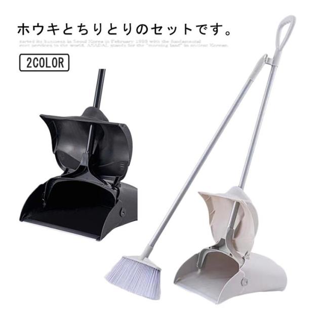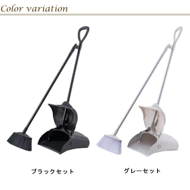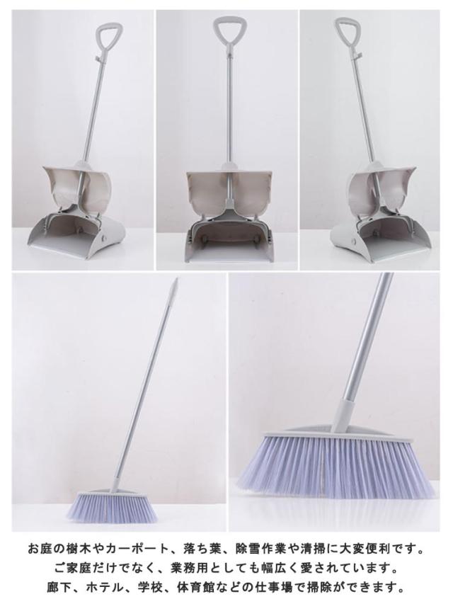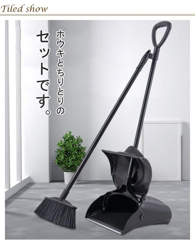 ほうき ちり取りセット 立式掃除 掃除用品 ブラック グレー 幅広い 長柄箒 蓋付き 防臭防風 折りたたみ スリム 業務用 家庭用 屋外 庭園 ベランダ 玄関 落ち葉 除雪作業 廊下 ホテル 学校 体育館 掃除 手汚れず 掃き掃除 掃除 チリトリ セット コンパクト