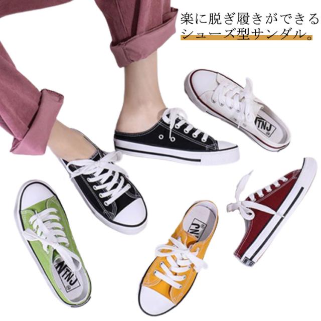 履きやすい シューズ スリッポン かかとなし レディース 婦人靴 かかとなし スニーカー サボ サンダル サンダルスニーカー ミュール キャンバス 靴 スリッパ ローカット サンダル スニーカー