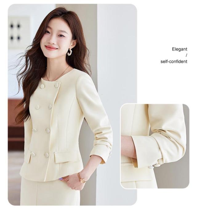 | ジャケットと腰高見えなタイトスカートの新鮮なセットアップ。 立体感のあるボタンジャケットがクラシックな印象を与え、洗練された雰囲気を演出。 スリット入りタイトスカート が女性らしいエレガンスをプラスし、動きやすさも抜群。 柔らかい色合いは知的で落ち着いた雰囲気を醸し出し、どんなシーンにもマッチ。 春・秋はもちろん、冬はインナーを工夫してオールシーズン着用可能。 この一着で、エレガントで洗練された大人の女性を演出しましょう! | |