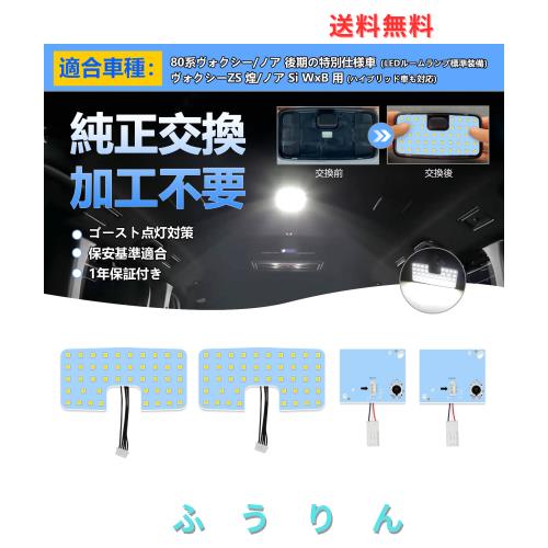 車種別専用LED ルームランプセット 内装パーツ、【適合車種】:80系ヴォクシー/ノア 後期の特別仕様車(LEDルームランプ標準装備)ヴォクシーZS 煌/ノア Si WxB 用 (ハイブリッド車も対応) 年式:H29.7〜R3.12、【発光カラー】:ホワイト 6000K 【セット内容】:リアセンターランプ×2、リアセンターランプのスイッチ基板×2、内張りはがし工具付き。ご注意:80系後期車 ルームランプは純正ハロゲン仕様車であれば、別途に[B07DWYBLLW]を検索して、そのLEDルームランプをご注文ください