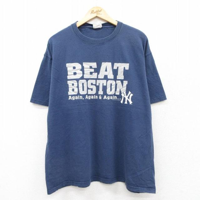 【商品名】 XL★古着 リー Lee 半袖 ビンテージ Tシャツ メンズ 00年代 00s MLB ニューヨークヤンキース 大きいサイズ コットン クルーネック 紺 メジャーリーグ ベースボール 野球