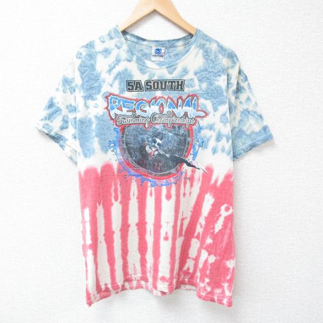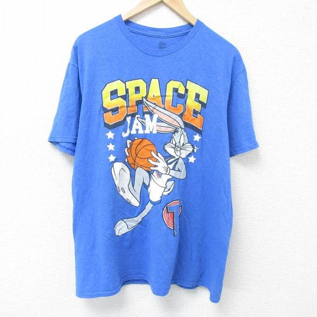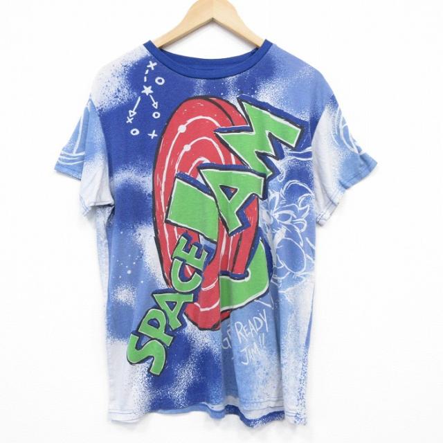 古着 半袖 Tシャツ メンズ ルーニーテューンズ LOONEY TUNES スペーズジャム タズ クルーネック 青他 ブルー タイダイ XLサイ 中古 古着