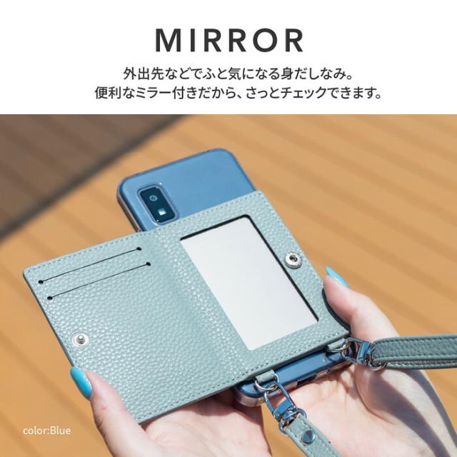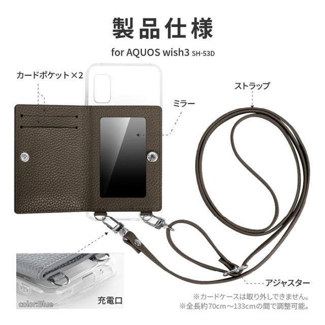 AQUOS wish3 ケース レザー ショルダー ストラップ付き カードポケット カード収納 ミラー 鏡 SH-53D アクオスウィッシュ3 シャープ