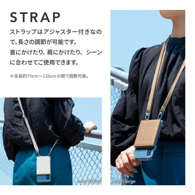 ショルダーストラップ付きで持ち歩きに最適/どんなコーデにも合わせやすいPUレザータイプ/長さ調整で首掛けor肩掛けが可能な2WAY仕様/身だしなみを整えたり化粧直しに最適な鏡付き/カード収納ポケット(2枚)