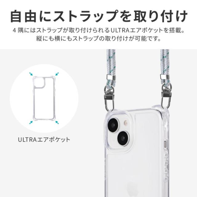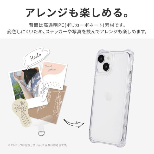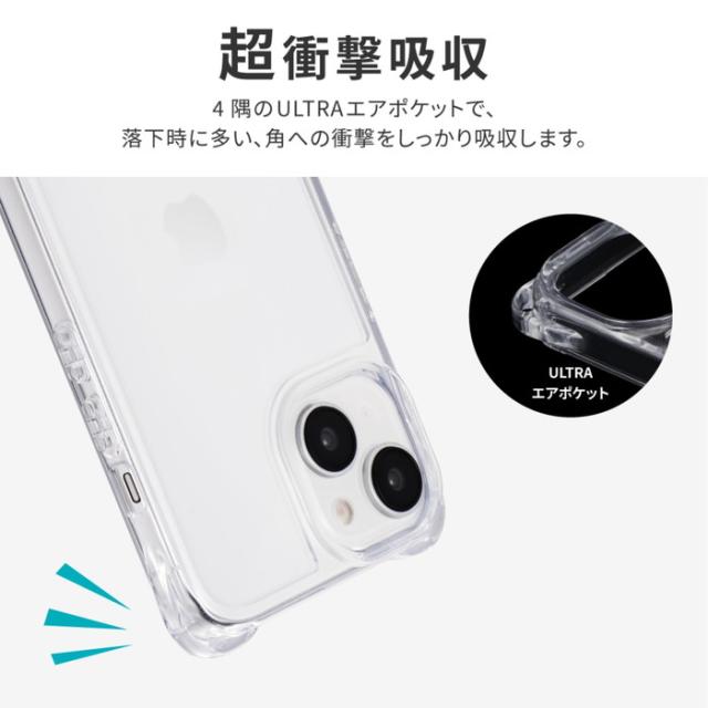 【耐衝撃】 縦にも横にもショルダーストラップが取り付けられるULTRAエアポケット搭載/硬く高透明なポリカーボネートと、柔らかく耐衝撃性に優れたTPUのハイブリッドケース/柔軟性があり着脱が簡単/ボタンやカメラレンズを保護する精密設計/ショルダーストラップの取り付けに最適な「挟み込みシート」付属。