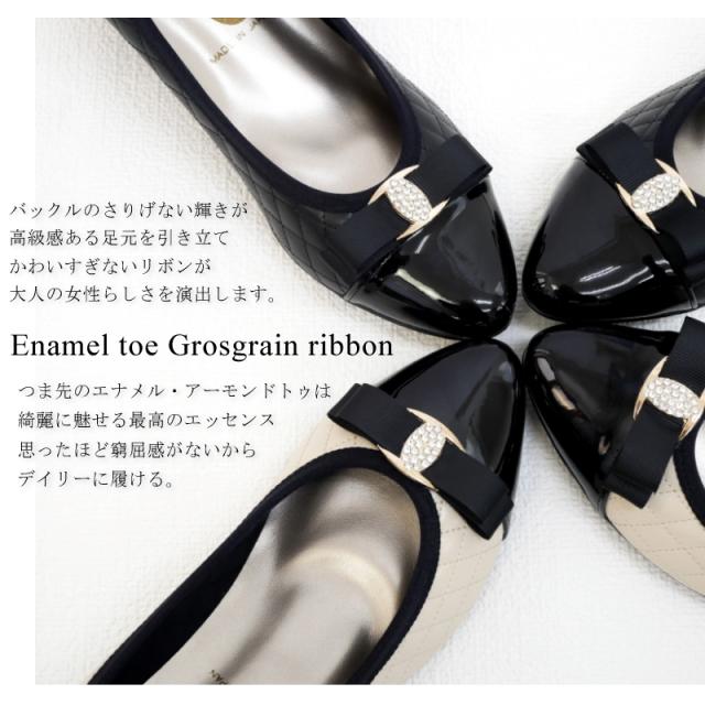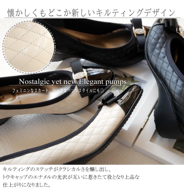 送料無料 made in japan エレガンスパンプス リボンパンプス キルティングデザイン グログランリボン ゴールドバックル エナメルトゥ 滑りにくい オケージョン
