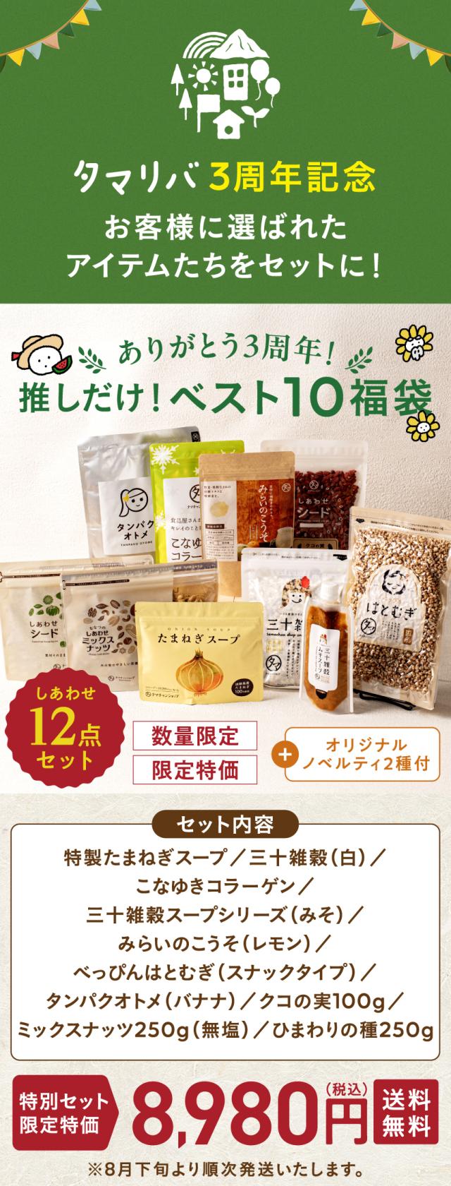 \ありがとう3周年!/「推しだけ!ベスト10福袋」タマリバ3周年記念 人気アイテム Best10 福袋 タマチャンショップ ノベルティ付き 12点セット 数量限定 限定特価 送料無料