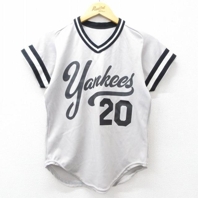 古着 ウィルソン 半袖 ビンテージ Tシャツ キッズ ボーイズ 子供服 80年代 80s ヤンキース Vネック USA製 グレー他 中古 古着