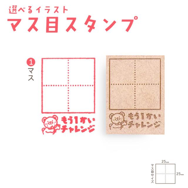 商品名:マス目スタンプ [ 3マス ]マス目サイズ:縦25 × 横25 mm本体サイズ:縦110 × 横30 × 厚さ20 mm素材:【台木部分】エコウッド(MDF) / 【印面部分】樹脂