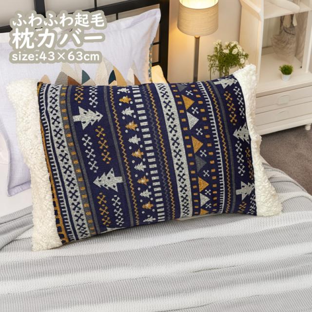 シープ調 ふわもこ 枕カバー ピローケース 43×63cm 起毛 ふわふわ ノルディック 北欧 あたたか かわいい あったか ファスナーなし 折り込み 筒形 冬用 まくらカバー 寝具