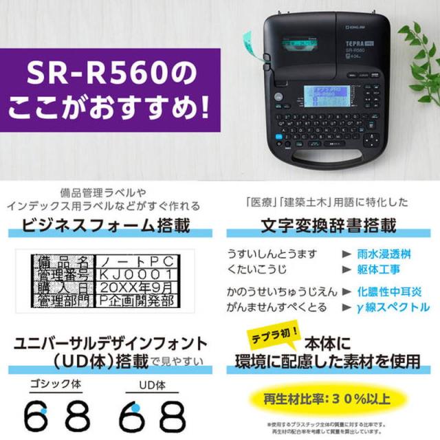ラベルプリンター テプラ PRO 本体 キングジム SR-R560 PC接続対応 バーコード印刷 4-24mmテープ使用可能