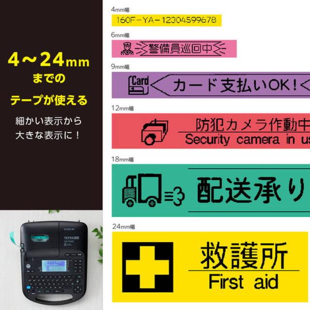 ●4〜24mm幅の「テプラ」PROテープカートリッジに対応