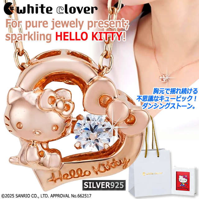 whiteclover ハローキティ ダンシングストーンネックレス ピンクゴールド シルバー925 キュービックジルコニア オープンハート アクセ
