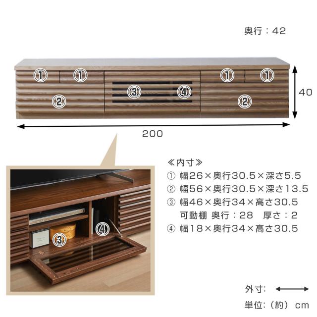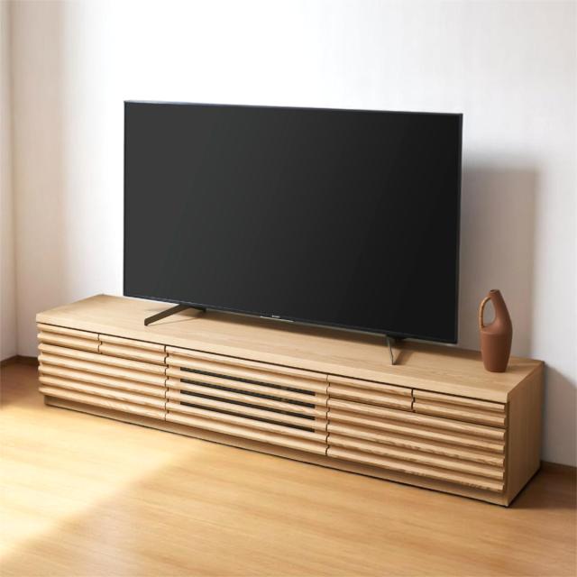 テレビ台 幅200cm ローボード 80型対応 天然木 完成品 ( TV台 テレビボード 収納 家具 ラック フラップ扉 無垢 引き出し 可動棚 リビングボード ルーバー ナチュラル ウォールナット )