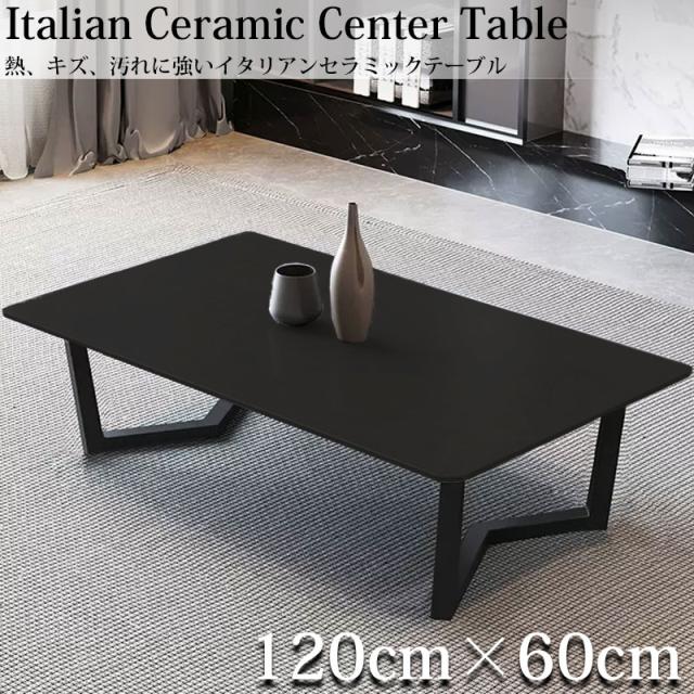 センターテーブル おしゃれ イタリアン岩盤 セラミックトップ セラミック 天板 セラミックテーブル ローテーブル パソコン ソファ 高級 インテリア 120x60cm CT-04BK