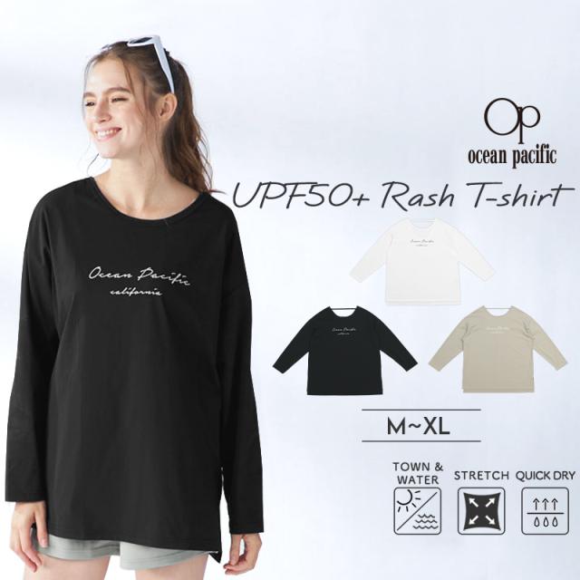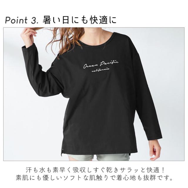 【SALE!! 4950円→3850円】 オーシャンパシフィック レディース ラッシュ トップス 水着 長袖 《レビュー記入でメール便無料》 PEARTEX 水陸両用 速乾 Tシャツ 単品 ラッシュガード カバーアップ 体型カバー ロング丈 ロンT アウトドア ママ 大きいサイズ : OP 送料無料