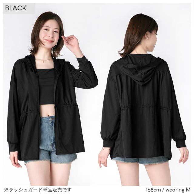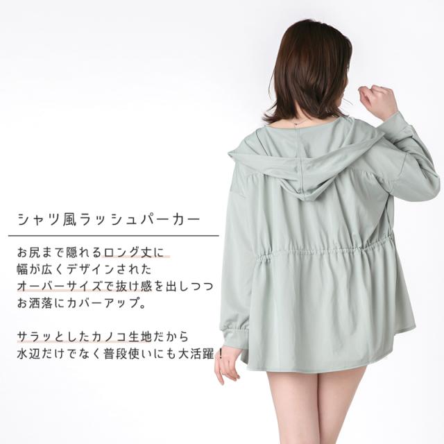 着る日焼け止め 大きいサイズ ラッシュガード レディース 体型カバー UPF50+ ラッシュ パーカー 水着 《レビュー記入で送料無料》 水陸両用 シャツ風 ロング丈 ドロスト ゆったり 3L LL 2L L 20代 30代 40代 50代 60代 ママ お洒落 可愛い 無地 フード : BEACH DREAM 送料無料