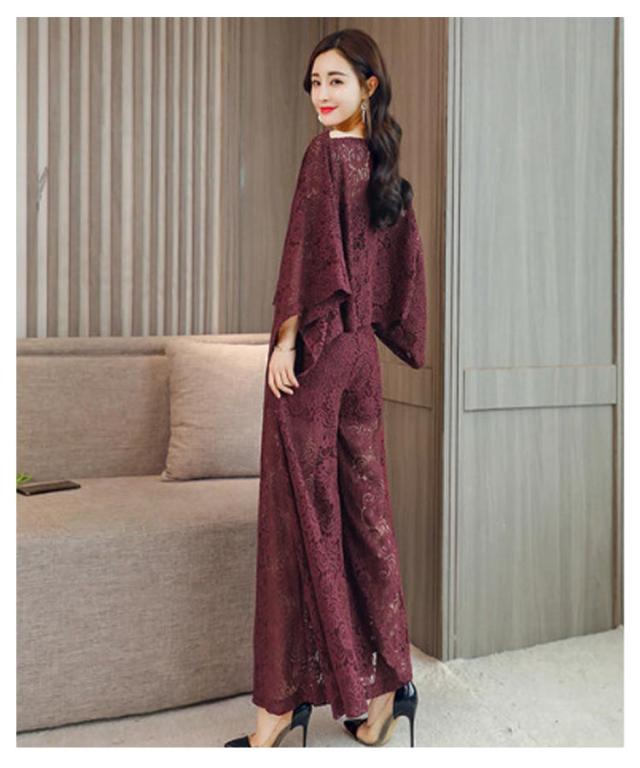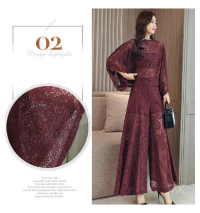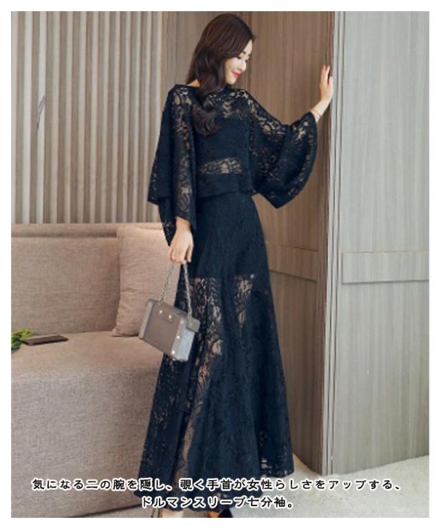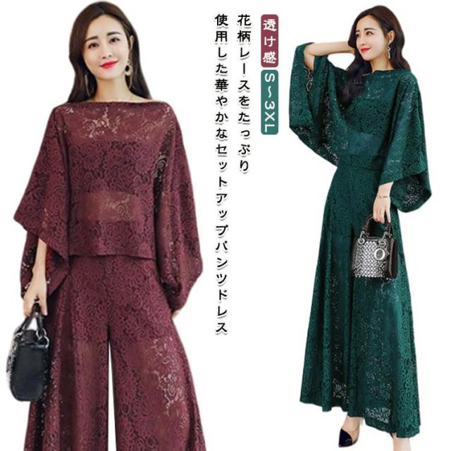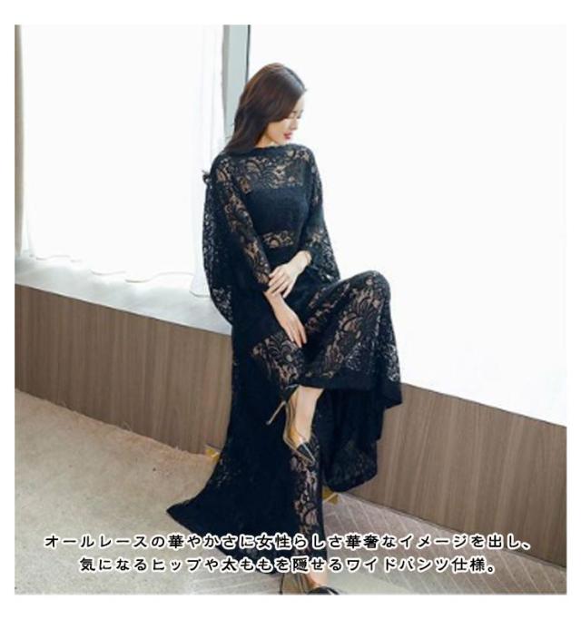 レース お呼ばれ 二次会 パーティードレス ロングパンツ 上下セット きれいめ 結婚式 セットアップ ドルマンスリーブ 袖あり パンツドレス パーティー 披露宴 可愛い 透け感 かわいい フレアパンツ ワイドパンツ 総レース 送料無料
