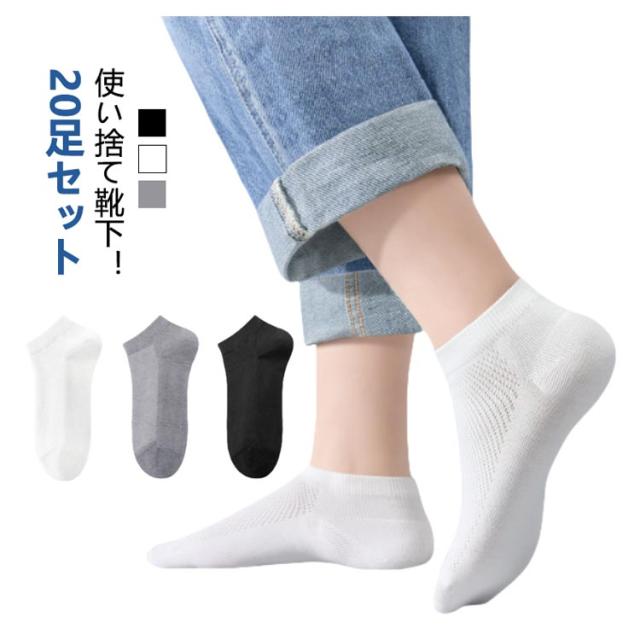 20足入り 使い捨て靴下 ソックス メンズ レディース 業務用 通気性 伸縮性 入院 メッシュ 通気性 春夏秋 使い捨て靴下 靴カバー 使い捨て 旅行 入院 キャンプ 防災グッズ フリーサイズ 黒 白 グレー ホワイト ブラック クルーソックス 送料無料