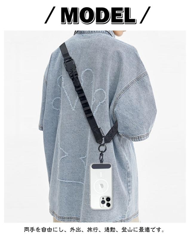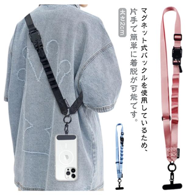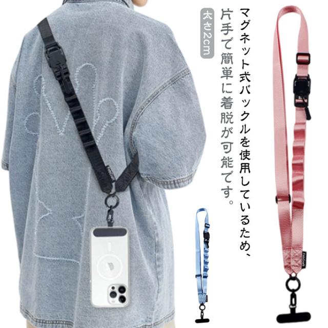 スマホショルダーストラップ 太め ショルダーストラップ スマホ 携帯用 紐 ベルト 幅広 ストラップ スマホショルダー ストラップホルダー 挟むだけ 軽量 ナイロン 首掛け 肩掛け 斜めがけ マグネット式バックル 後付け 落下防止
