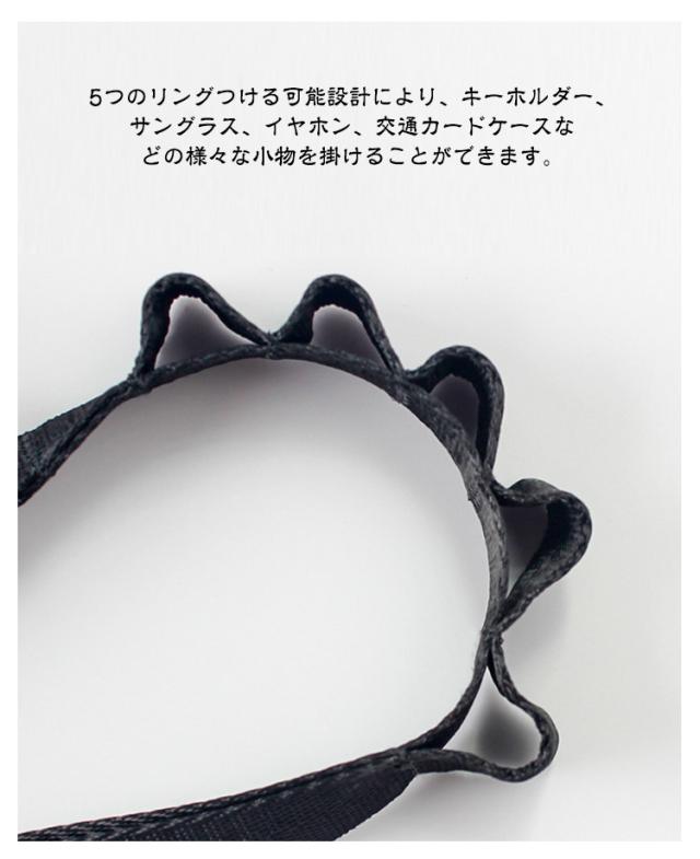 | マグネット式バックルを使用しているため、片手で簡単に着脱が可能です。【太さ2cm】 高級で軽量なナイロン素材が使用されています。手触りは非常に柔らかく滑らかで、長時間使用しても疲れにくくなっています。 ナイロンは耐摩耗性が高く、破れにくい特性があります。汚れがある場合は水洗いできます。 5つのリングつける可能設計により、キーホルダー、サングラス、イヤホン、交通カードケースなどの様々な小物を掛けることができます。 両手を自由にし、外出、旅行、通勤、登山に最適です。 また、身長に応じて長さを自由に調節できます。 スマホ ショルダーストラップとして、さまざまな型番のスマートフォンに対応します。カメラストラップとして、首掛けや斜め掛けに使用できます。ミニバッグのショルダーストラップとしても利用可能で、日常生活のニーズを満たします。 | |