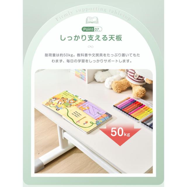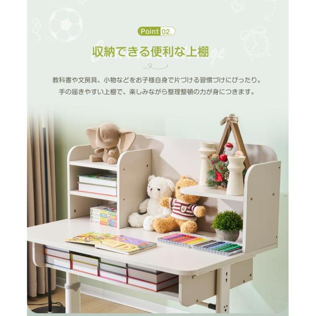【収納できる便利な上棚】教科書や文房具、小物などをお子様自身で片づける習慣づけにぴったり。手の届きやすい上棚で、楽しみながら整理整頓の力が身につきます。