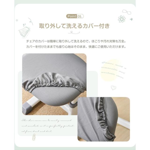 【取り外して洗えるカバー付き 】チェアのカバーは簡単に取り外して洗えるので、ほこりや汚れ対策も万全。カバーを付けたままでも座り心地はそのまま、快適にご使用いただけます。