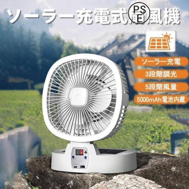 ソーラー扇風機 アウトドア 扇風機 キャンプ 扇風機 5段階風量 調光3段階LEDライト 小型ソーラーパネル付