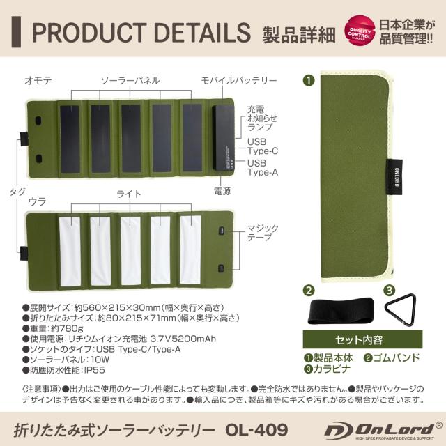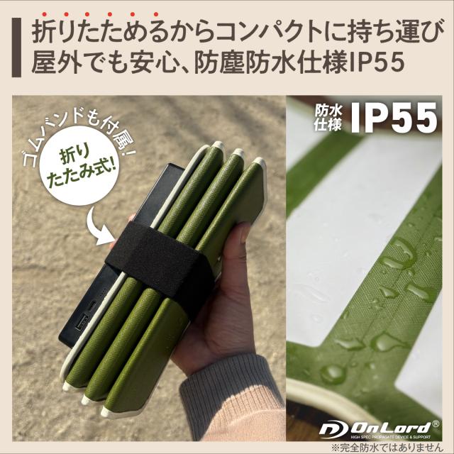 オンロード(OnLord) 折りたたみ式ソーラーバッテリー モバイルバッテリー ライト ソーラーパネル 10W USB 防水 OL-409