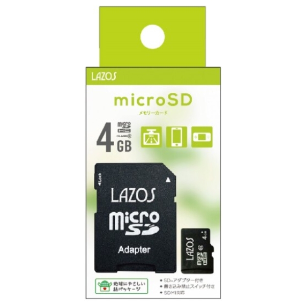 microSDカード 4GB 格安・アダプタ付 L-B4MSD6 LAZOS microSDHC マイクロSD