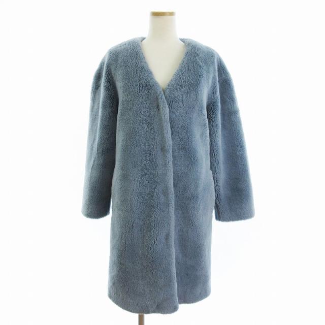 【中古】アナザーエディション アローズ ボアコート ロング ノーカラー フラップボタン 青 ブルー S ■FF