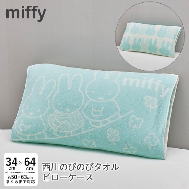 西川 のびのびタオルまくらカバー ミッフィー おさんぽ ブルーナ 抗菌 伸縮タイプ リバーシブル ふわふわ 約34×64cm枕カバー ピロータオル XT65208656 N便1