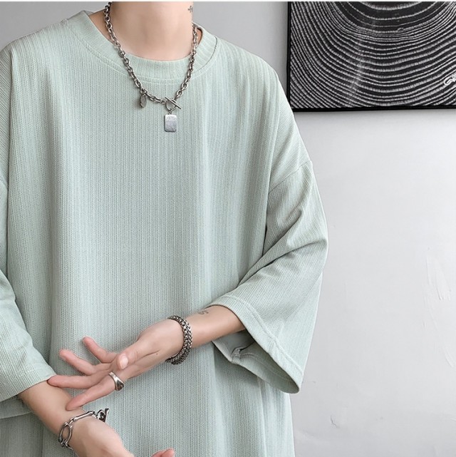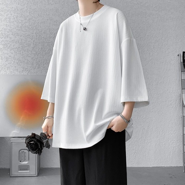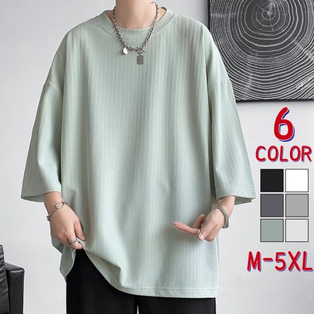 Tシャツ メンズ 7分袖tシャツ 接触冷感 ビッグtシャツ 夏 ゆったり クルーネック シンプル 半袖 スポーツ ルームウェア カジュアル 快適 おしゃれ 通学 通勤