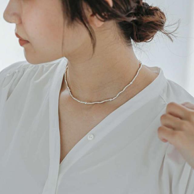 JAMIRAY(ジャミレイ)より、バンブーショートネックレス“BAMBOO SHORT NK 38”のご紹介です。シルバー925の華奢なバンブー調ビーズと極小ビーズを組み合わせたショートネックレス。デイリー使いしやすいボリューム感ながら、造形的なフォルムが存在感を放つ一品。ショートネックレスで、顔回りをより華やかにしてくれます。