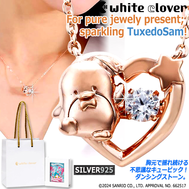 whiteclover タキシードサム 45周年アニバーサリーダンシングストーンネックレス ピンクゴールド シルバー925 オープンハート サンリオ