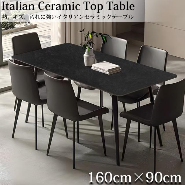 ダイニングテーブル イタリアン岩盤 セラミックトップ 4人掛け〜6人掛け セラミック 天板 セラミックテーブル 食卓テーブル 大理石調 インテリア 160x90cm DT-08BK