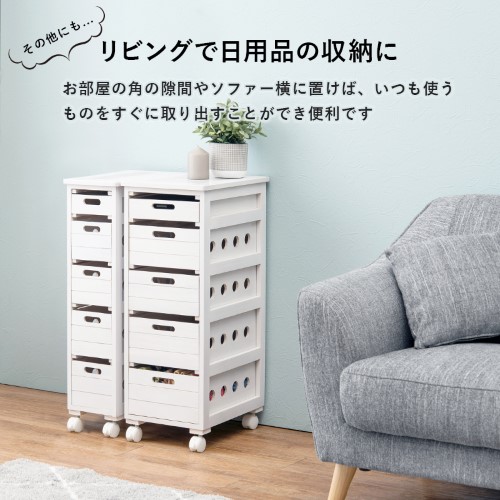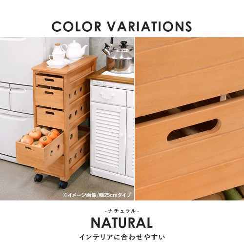 | ■天板:タイル付■本体:キャスター付(内2個ストッパー付)■引出内寸:約幅23×奥行34.5×(浅)4.5(中)10.5(深)12.5cm |